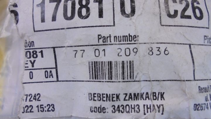 Marka: RENAULT Model: RENAULT MASTER III Grupa: NADWOZIE Podgrupa: ELEMENTY ZAMYKANIA Karta Pojazdu: 0 NrEtykiety: 99/43404 Ilość: 1 Numer Regału: A II 806 W Kod Lakieru: Kod Nadwozia: Typ Silnika: