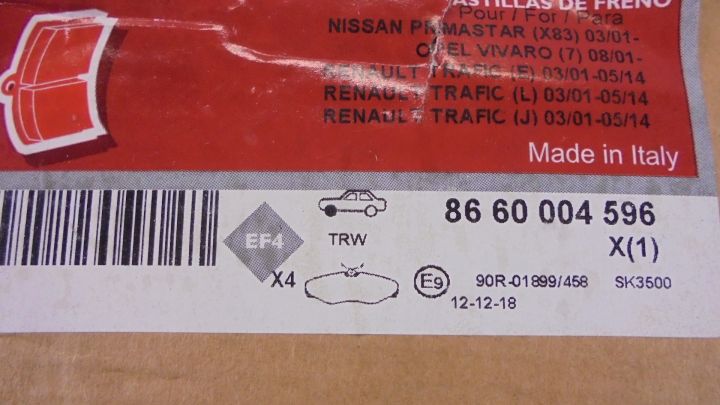 RENAULT TRAFIC II - KLOCKI HAMULCOWE PRZÓD